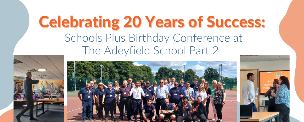 Saturday, July 27th was another incredible day for Schools Plus as we celebrated our second 20th birthday conference at The Adeyfield School in Hemel Hempstead. A huge thank you to Neil and his team for hosting us, and a special shoutout to Sam Cullum and the HR team for organising everything and making sure the day ran smoothly.